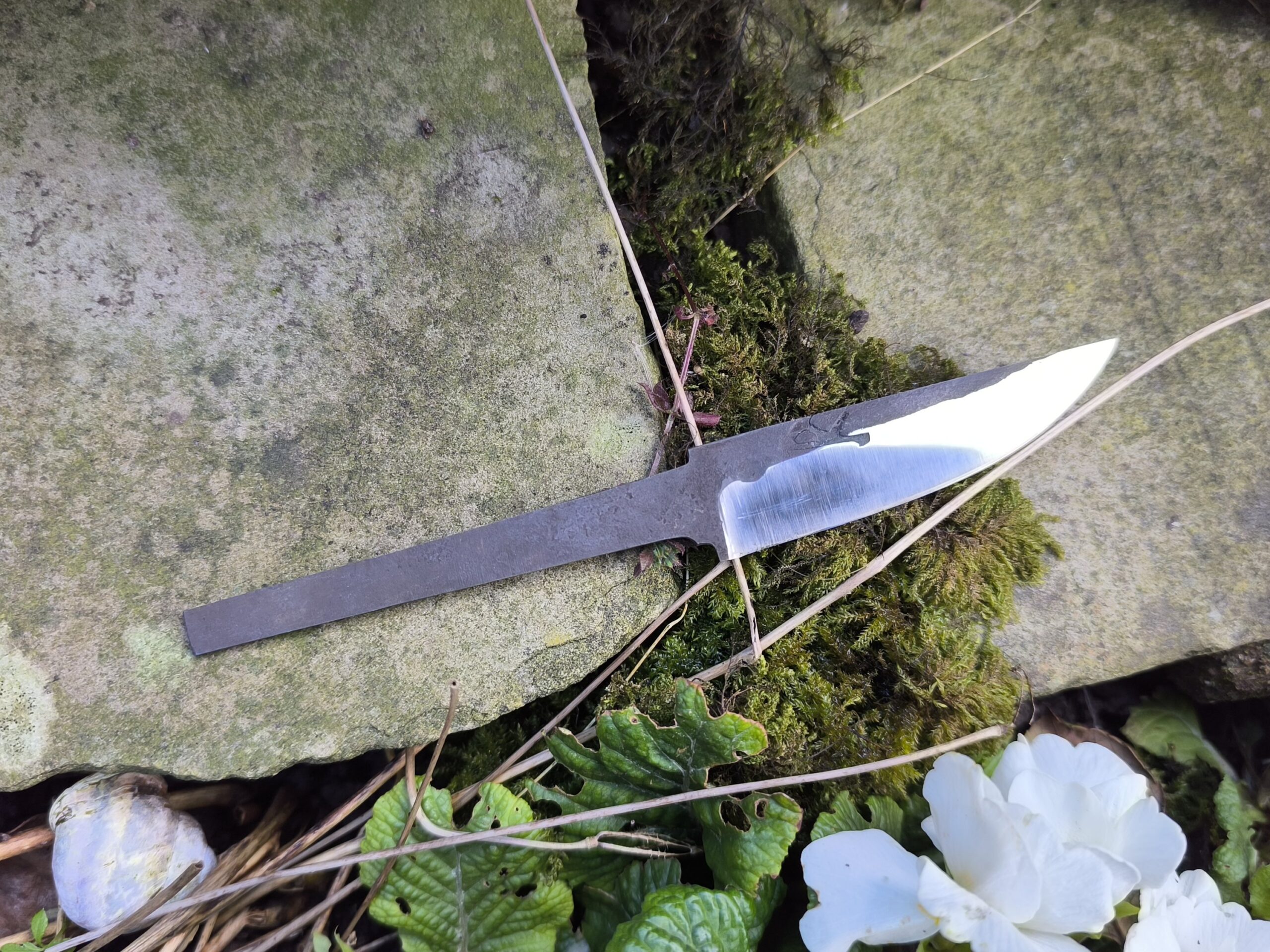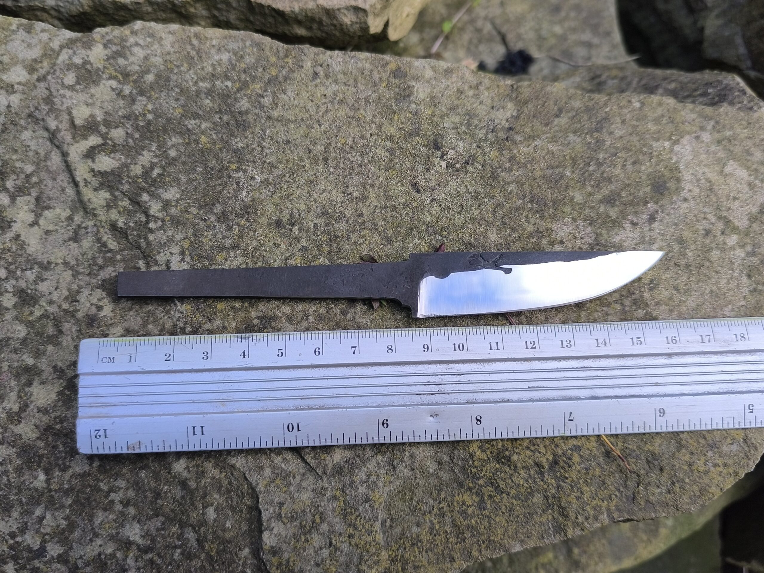 Hand forged Puukko knife blank made of oil hardening stainless steel.